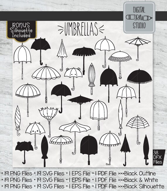 Umbrella Silhouette Illustrations Drawing In Svg Pdf Ai Jpg Etsy